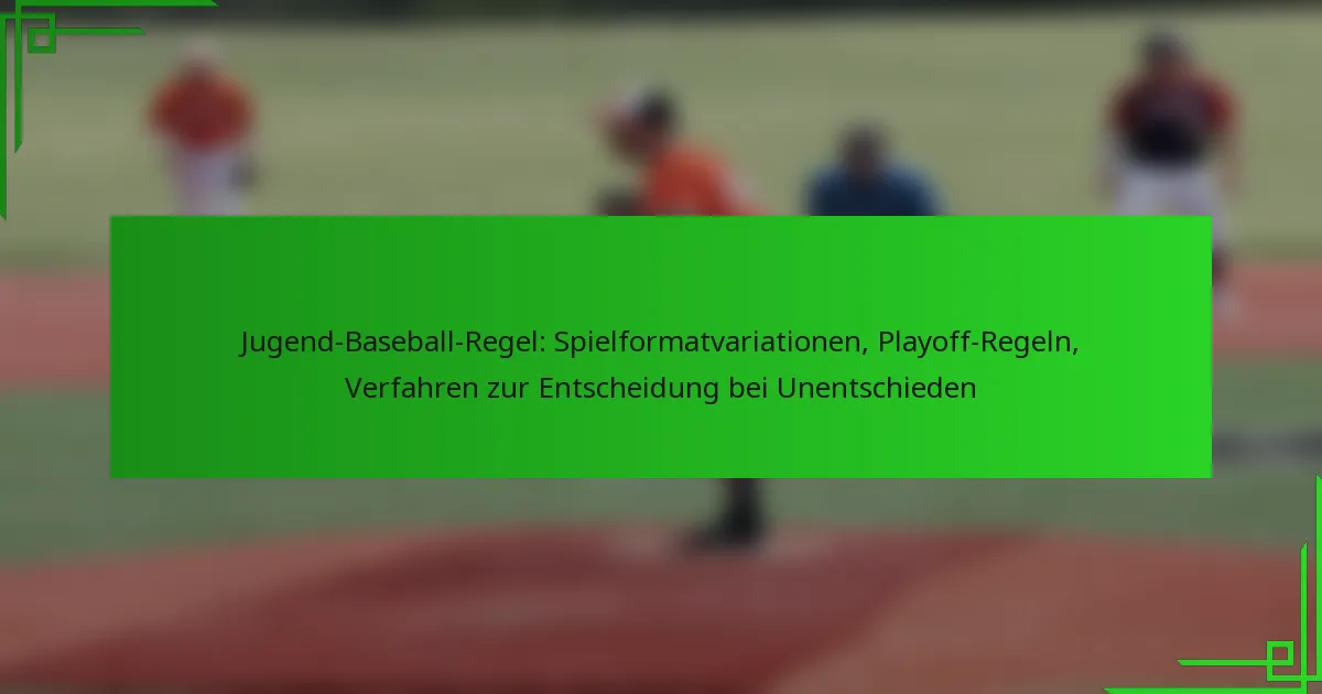 Jugend-Baseball umfasst eine Reihe von Spielformatvariationen, die auf verschiedene Altersgruppen und Ligen zugeschnitten sind und sich auf die Spielerentwicklung durch spezifische Innings-Strukturen, Teilnahmebedingungen und Spielzeiten konzentrieren. Darüber hinaus umreißen die Playoff-Regeln die Qualifikationen der Teams und die Spielstrukturen, während die Verfahren zur Entscheidung bei Unentschieden Methoden zur Lösung von Spielen bieten, die unentschieden enden. Das Verständnis dieser Elemente ist für Spieler, Trainer und Eltern, die sich im Jugend-Baseball zurechtfinden, unerlässlich.