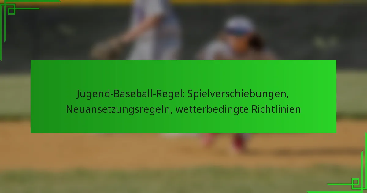 Im Jugendbaseball werden Spielverschiebungen hauptsächlich durch Regeln geregelt, die darauf abzielen, die Sicherheit der Spieler und einen fairen Wettbewerb zu priorisieren. Verschiedene Faktoren, wie Wetter- und Platzbedingungen, können zu Verschiebungen führen, was klare Verfahren für die Neuplanung erforderlich macht, die die Kommunikation zwischen Ligabeamten, Eltern und Spielern einbeziehen. Vertrautheit mit wetterbezogenen Richtlinien ist für die Teams entscheidend, um die Einhaltung sicherzustellen und eine sichere Spielumgebung aufrechtzuerhalten.