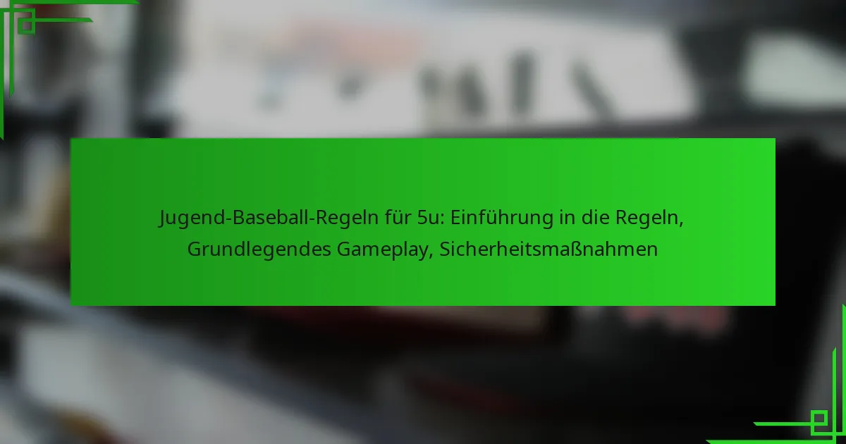 Im 5u Baseball sind Sicherheitsmaßnahmen entscheidend, um junge Spieler vor Verletzungen zu schützen und ein positives Erlebnis zu gewährleisten. Dazu gehört die Verwendung geeigneter Ausrüstung, die Einhaltung von Regeln zur Verletzungsprävention und die Schaffung einer sicheren Spielumgebung.